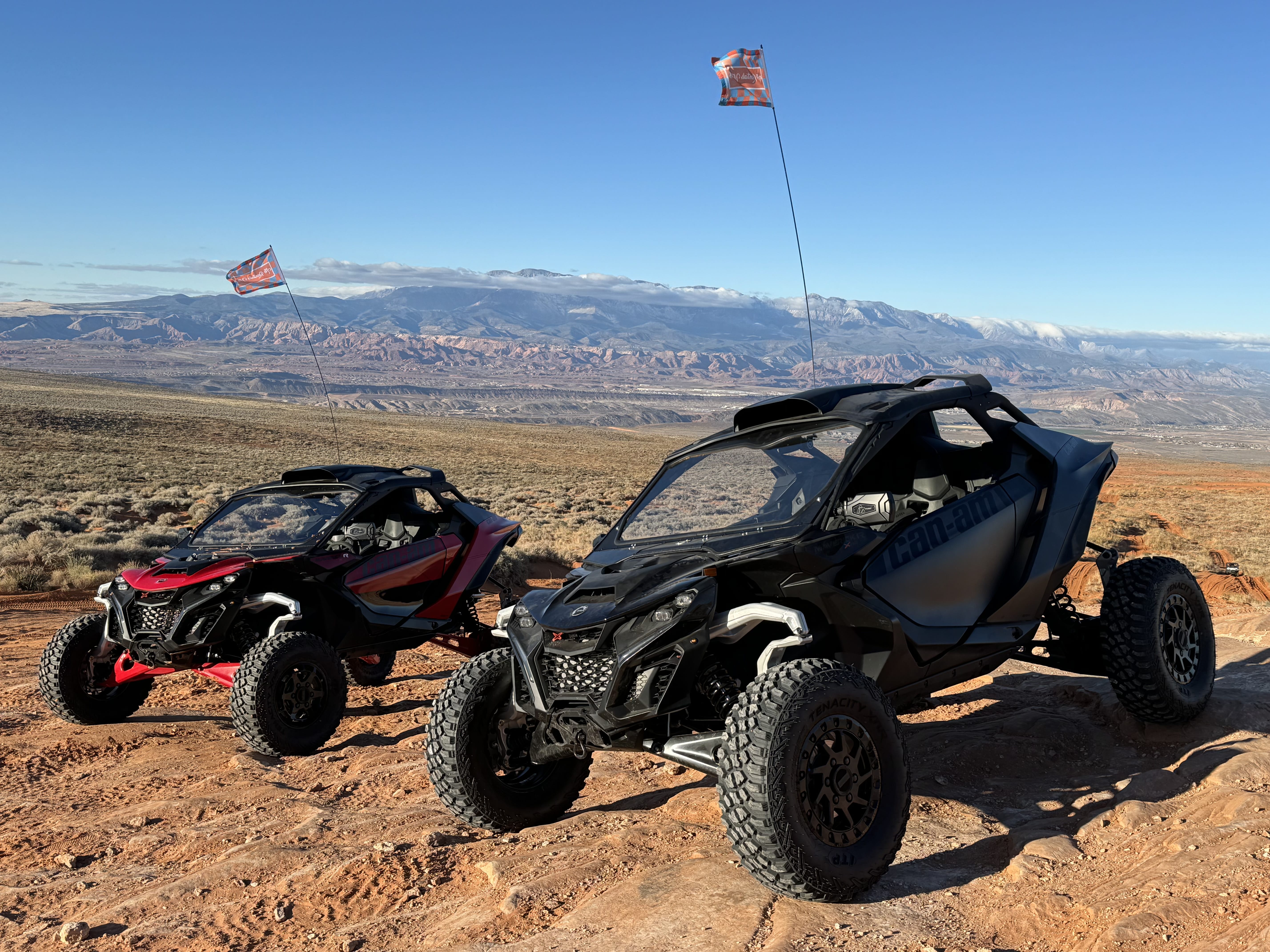 Take command of any terrain in our Can-Am Maverick R XRS Turbo 240hp, the highest-performance UTV in our lineup. Massive turbocharged power is paired with a race-inspired DCT transmission and advanced suspension that stays smooth, planted, and controlled through aggressive and technical terrain. A wide stance, ultra-rigid chassis, and precision steering deliver confident handling, while the refined cockpit keeps the ride comfortable and locked in. Available only as a two-seater, the Maverick R XRS Turbo sits at the peak of off-road capability. Prices will vary by location. Start the booking process, you can choose any off-road destinations in Utah, Arizona, Nevada, and California.